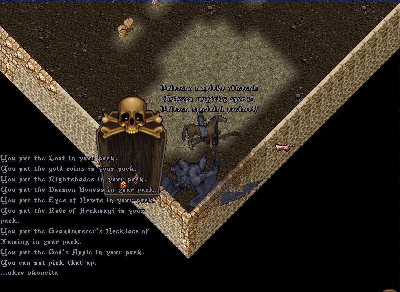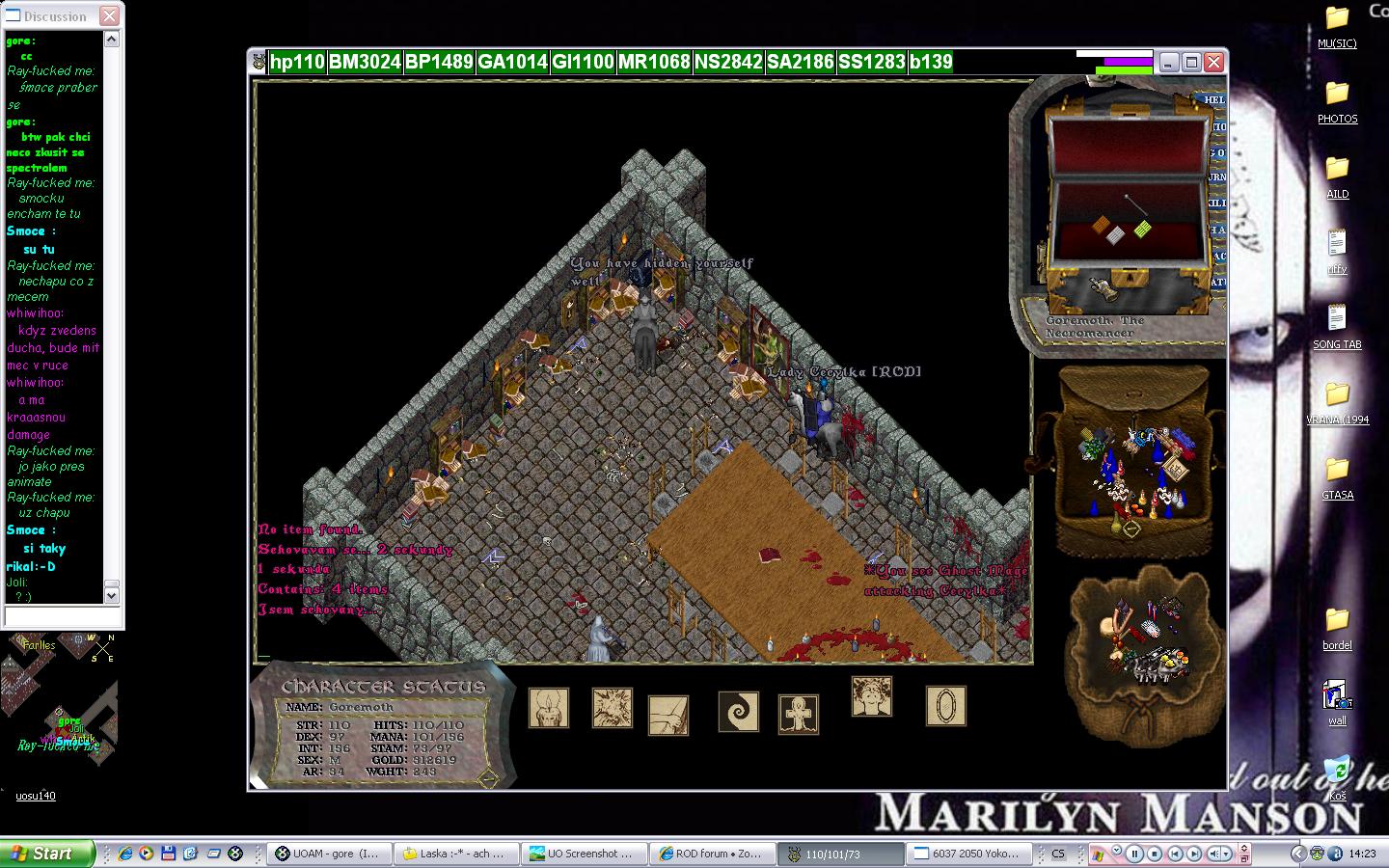 Tak sem rano vstal... a protoze sem nemel dneska praci rikam si proc zas nezaklikat UO po delsi dobe... Lognu mapu... koukam Whi a Rain sou v CV... Tak ok. Dohodli sme se na FDD a vyrazili jsme... At to ze zacatku vypadalo jakkoli chaoticky - utikalo vse jak po masle a ani se neumiralo. Potom nas cekal pohled na poklad v kterym byl jeden item. Coz nas samozrejme hrube nakoplo abysme tama dosli a vybrali to. Jeste nez se DMko stihlo vubec probrat......chutnalo hlinu a Fan Dancer si taky dlouho na svetle nepobyl..... V pokladu uz se na nas smalo wire ktery jsme ale bohuzel fizzli...........zivot je horkej. Ale i tak krasnej dung, dik za akci panove - Whi kler, Rain rang, Ja necro. Viz. fotky.