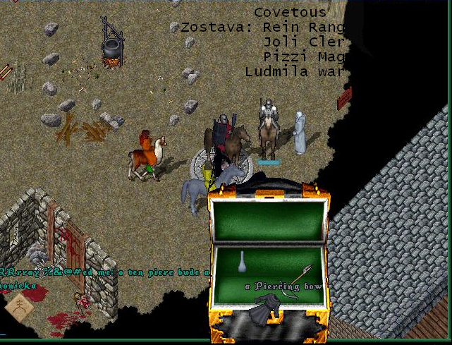 Za 24 hodin jsme ?li 5 krát covetous.Musí to být rekord.Hráči se měnili ale zhruba sestavy se točili kolem těchto jmen Jolik,Fisik,Ludmila,Rod,Pizi, Zelenej na ty který sem zapomněl se omlouvám.