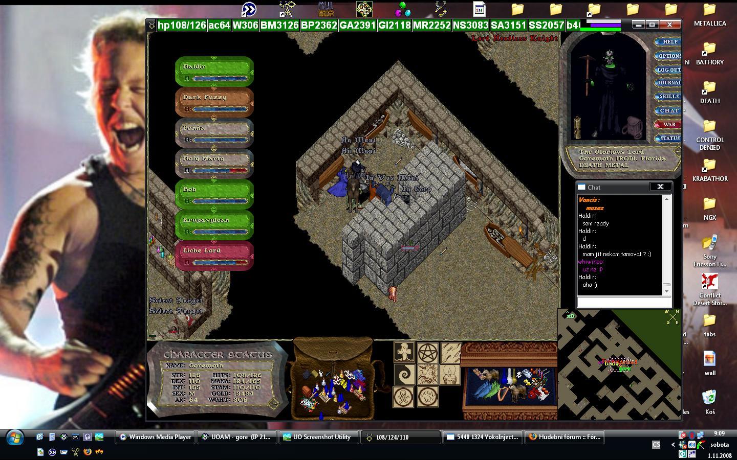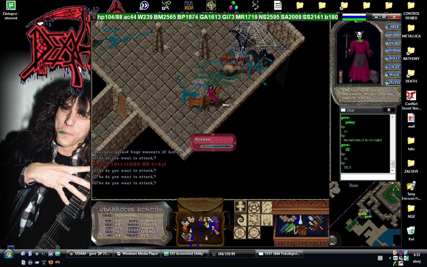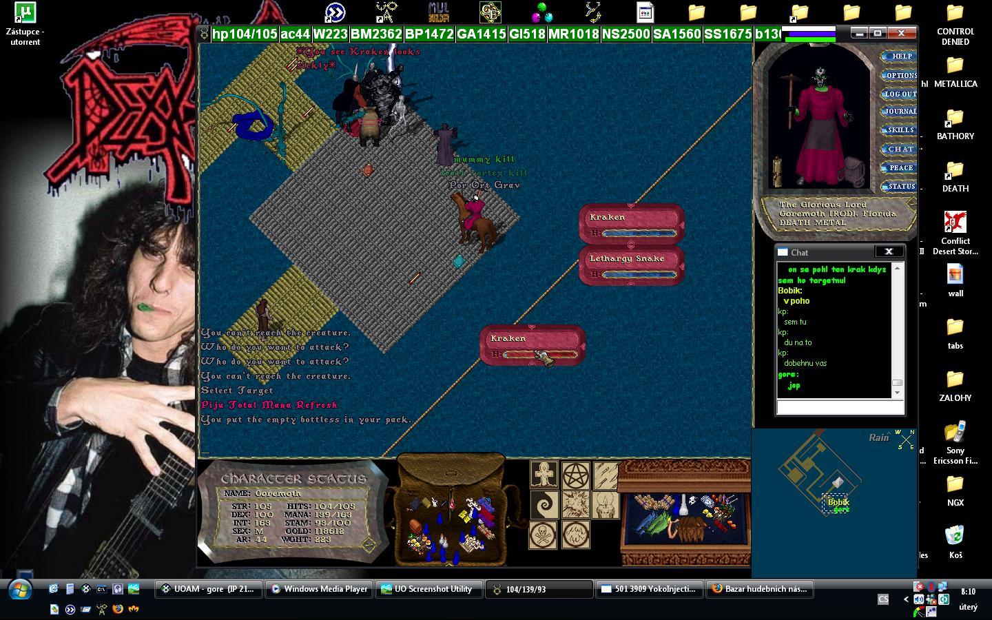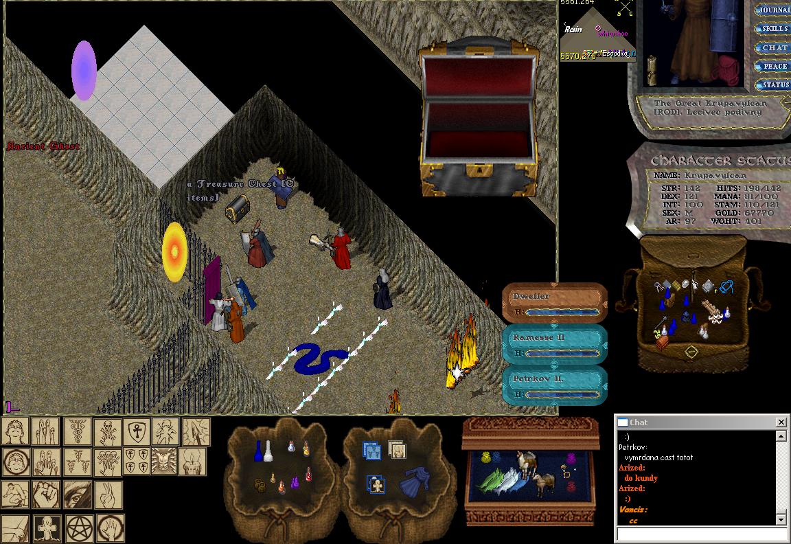 Tak jsem rano vstal nejak brzo -rikam si proc si nezahrat po delsi dobe UO a dat si nejakej dung. Chtel jsem si hodit TK sam, ale lognul jsem mapu a tam uz cekali dunguchtivy Bob a Koko, takze sme to dali dokupy a vyrazili do TK. Cely jsme to prosli fakt rychle, itemy se celkem pekne hromadili. Potom jsme si jeste skocili do Wateru zkusit vytahnout par krystalu ale nepostestilo se. I tak pekny rano, takze dik za akci !