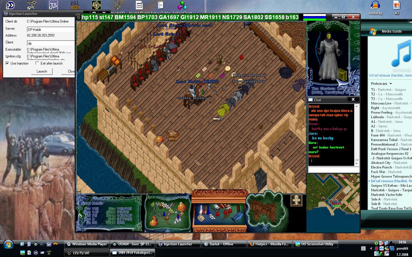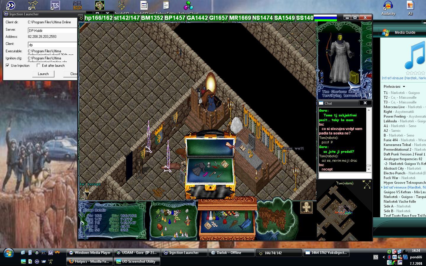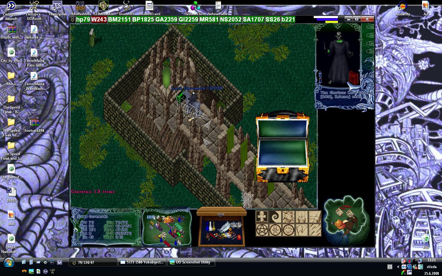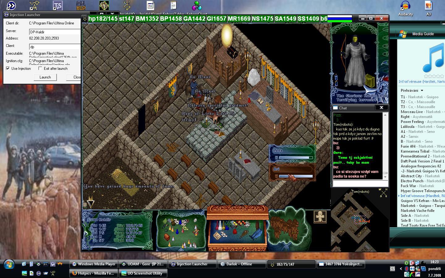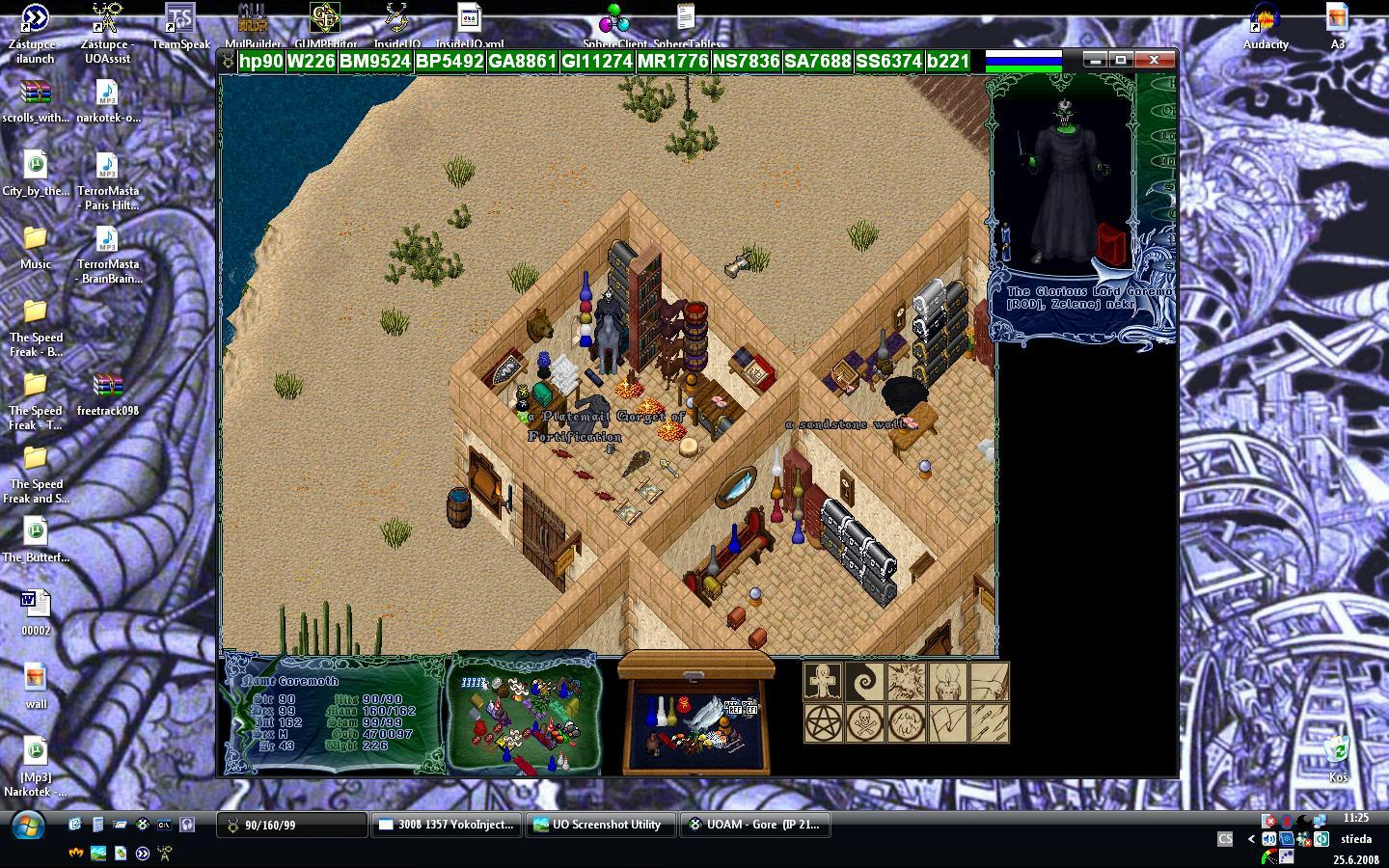 Tak jsme se po obede regroupli a vyrazili do FDD. Vsechno slo pekne a svizne, az na par zavahani a trochu chaos v posledni mistnosti :) Z lootu mimojine padla lvl 5 mapa ke ktery se odviji dalsi povidani. Vratili jsme se domu a rozhodli mapku rovnou zajit, nachazela se v Moonglow kousek za GZ. Cestou jsme bezeli i kolem domku s cislem !!!116!!! cimz jim timto dekujem za jejich BONZ (relog?) protoze prave oni na nas poslali/relogli pk. Nic naplat, prvni varku dvou pk sme se smichem odrazili a mapkovali dal, potom se na nas vsak vrhla hotova smrst vrahounu, teda spis parodie na ne. Mapku sme si vybrali a rozutekli se domu. Prereffli jsme a v nejlepsi chvili se vratili zpatky a vetsinu pk jsme si solidne polozili, takze ekvip naseho maga Preslyho mame zpet a to se pocita! Nutno uznat ze to byl slusnej chaos, ale bitva pekna a rychla. Prikladam par fotek a vsem zucastnenym - ROD: Gore, Tom Engelo, cekatel Jaro, LaG: Ari, Tom(Catus), Xon (za nej sel pak Ari) a Dracula - dekuju za zachovani klidny hlavy a za peknej dung.